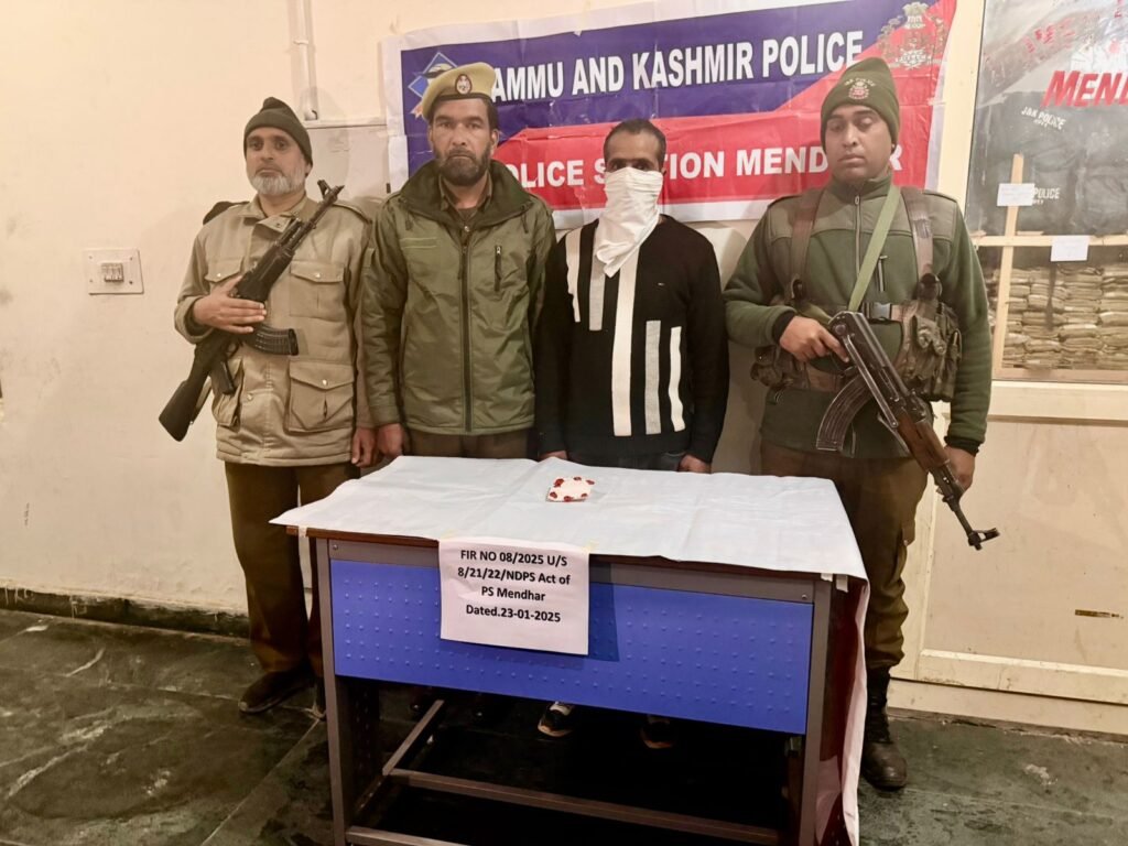 Poonch,DD,In a major crackdown against drug trafficking, the Police Station Mendhar has successfully arrested a notorious drug peddler involved in the illegal trade of narcotics. A team from Police Post Ari during a routine Naka at Sangala chowk Mendhar apprehended the individual, identified as Mohd Irshad s/o Ghulam Sarwar a resident of Ari Plaiser.