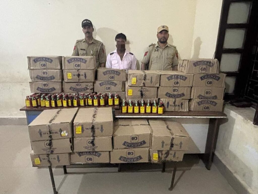 Udhampur,TDD, In a significant operation against illegal liquor trade, the Udhampur Police seized a substantial quantity of illicit liquor and arrested one bootlegger.