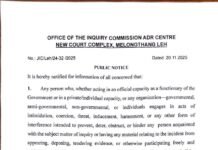 The Inquiry Commission issues a public notice warning against any intimidation, coercion, or obstruction of witnesses or individuals involved in the inquiry process. Victims of such acts may file complaints directly with the Commission, which assures confidentiality and swift action. Any retaliation against complainants or witnesses will attract legal consequences.
