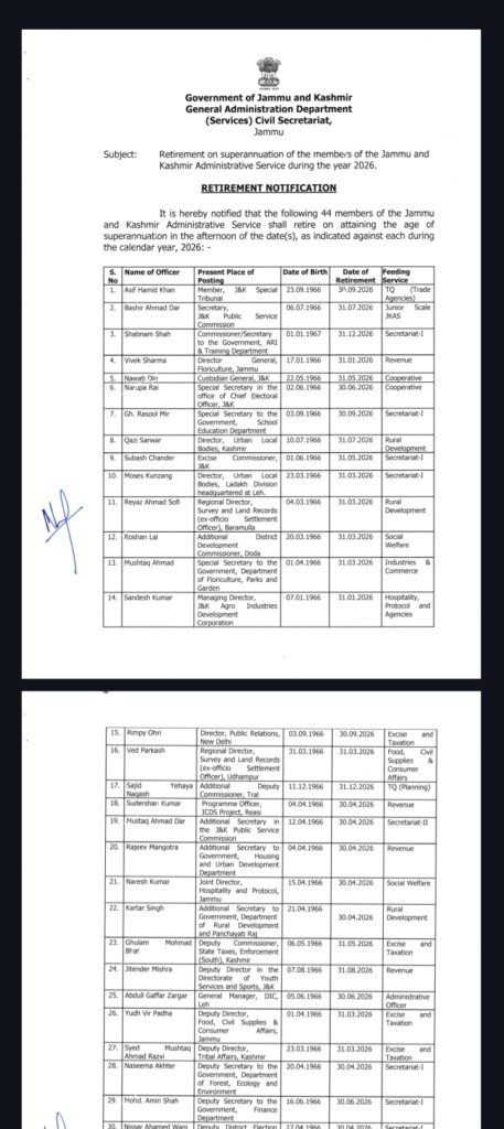 44 JKAS officers are going to retire in 2026