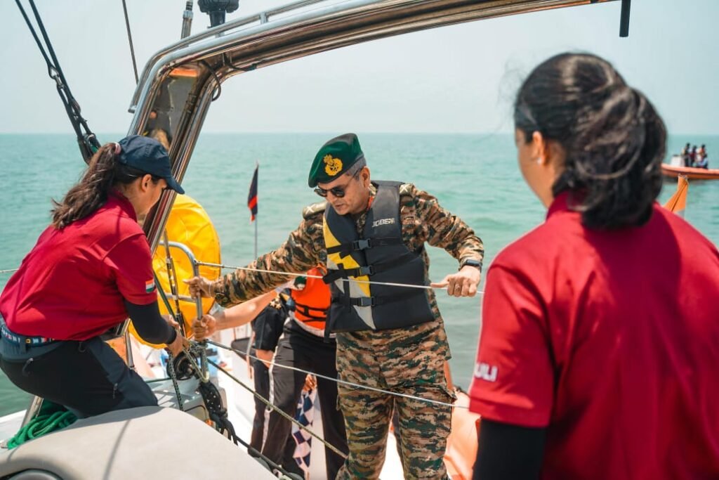 Delhi,DD, A tri-services all women Circumnavigation Sailing Expedition, “Samudra Pradakshina” from Mumbai to Seychelles and back was flagged off on April 7, 2025 by Lt Gen AK Ramesh, Commandant, College of Military Engineering (CME) from the Indian Naval Watermanship Training Centre, Colaba, Mumbai. The expedition, featuring an all-women 12-member crew from the Indian Army, Indian Navy and Indian Air Force, embarks on a challenging 55-day voyage covering 4,000 nautical miles from Mumbai to Seychelles and back aboard the IASV Triveni.