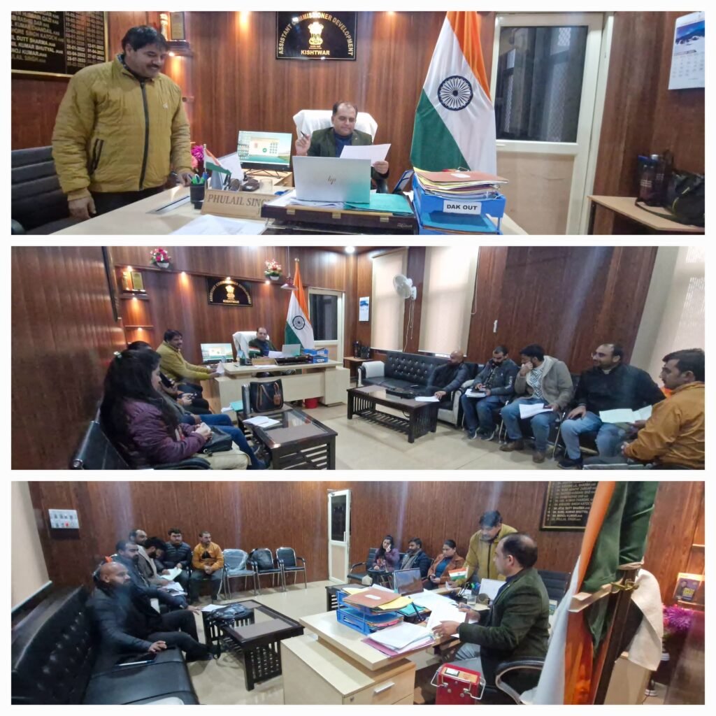 Kishtwar, TDD,The Assistant Commissioner Development (ACD) Kishtwar, Phulail Singh JKAS, today conducted a comprehensive review meeting with Block Development Officers (BDOs), technical staff, and dealing hands to discuss the progress of development works under CAPEX and SBM-G in the district.