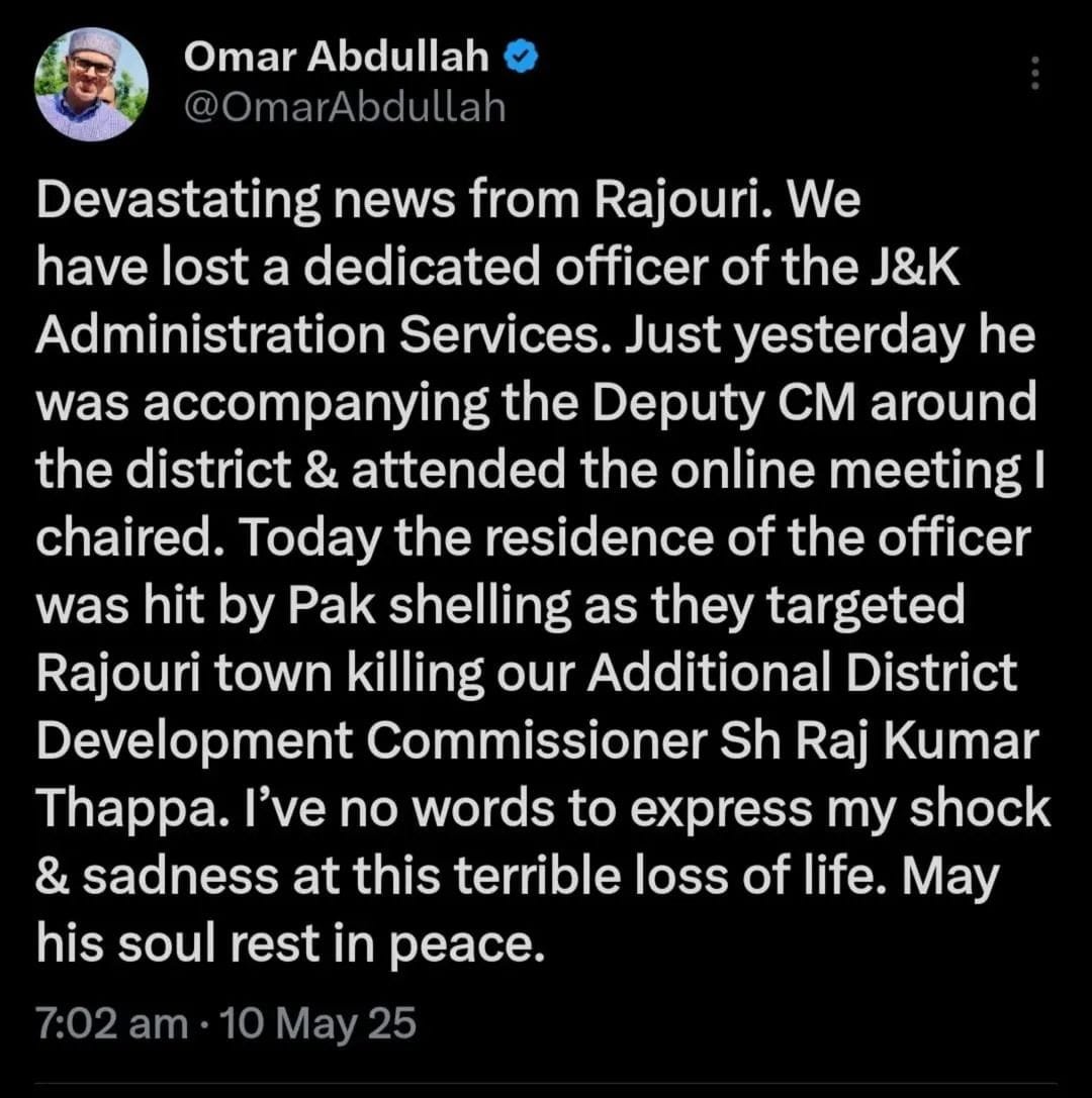 Rajouri: DD, An Additional District Development Commissioner (ADDC) Rajouri, Raj Kumar Thappa has martyred in the line of duty in Rajouri.