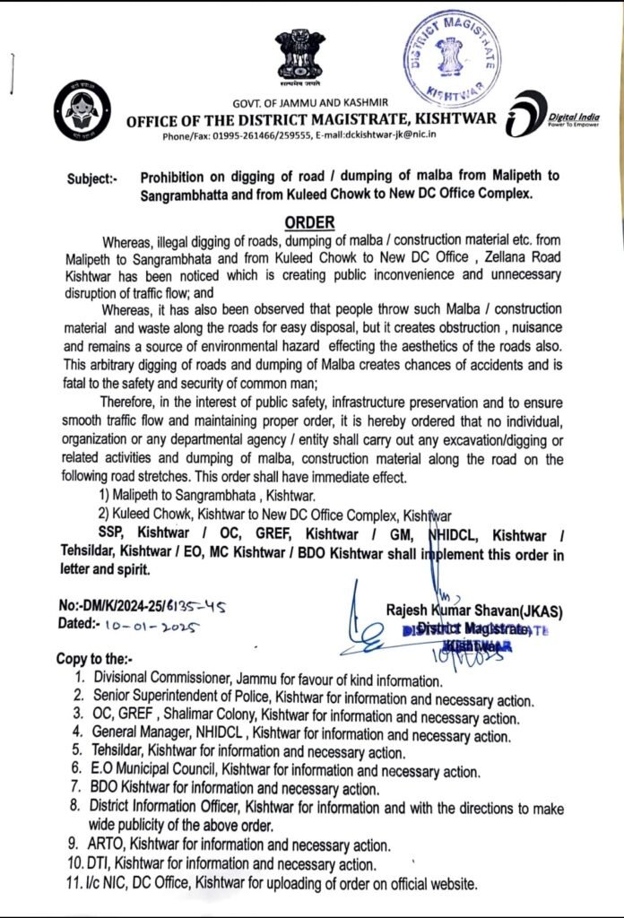 Administration prohibits digging of roads, dumping malba in Kishtwar Diplomat Digital 1 year ago The Diplomat Desk