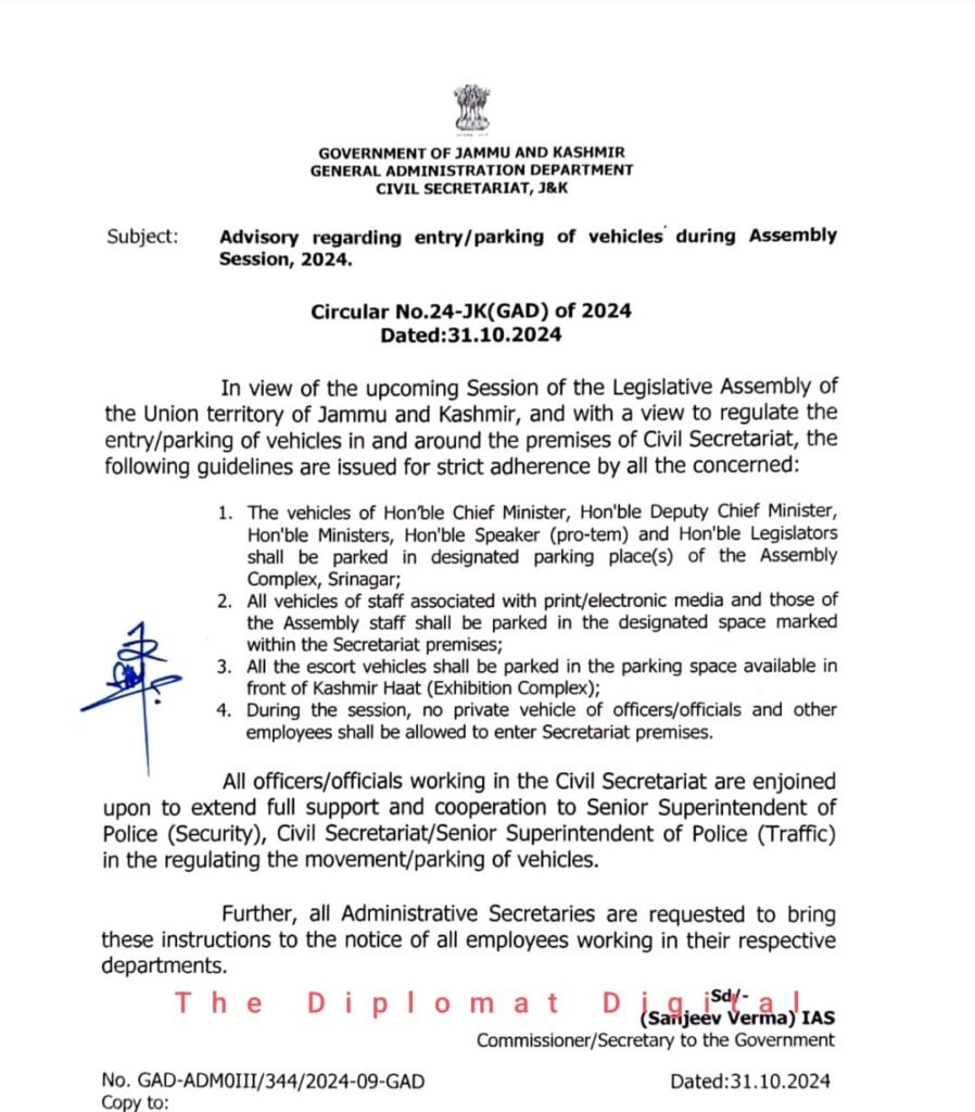 Advisory regarding entry/ parking of vehicles during Assembly Session 2024 Diplomat Digital 1 year ago