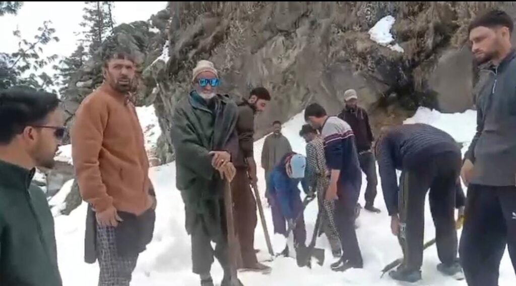 Kishtwar, (DD): With Eid ul Fitr fast approaching, residents of Warwan are struggling to clear snow manually from the Margan Top road, as authorities continue to neglect snow clearance efforts. The intentional closure of this crucial route has left nearly 60,000 people cut off, forcing them to use spades to reopen their only link to the outside world.
