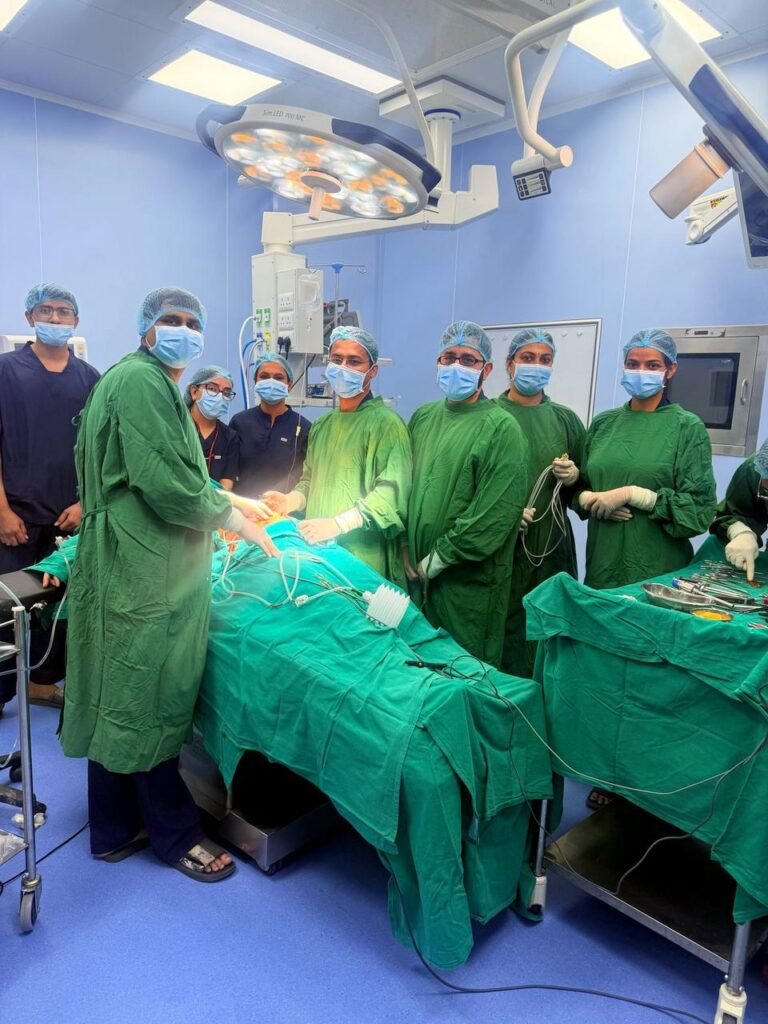 The procedure was carried out by a team of surgeons which included Dr. Vijay Kundal, Dr. Abhinav Mani, Dr. Sahil Sandal, and Dr. Vikas along with the supporting staff. The patient, a middle-aged woman suffering from chronic gallbladder issues, was discharged on the second postoperative day.