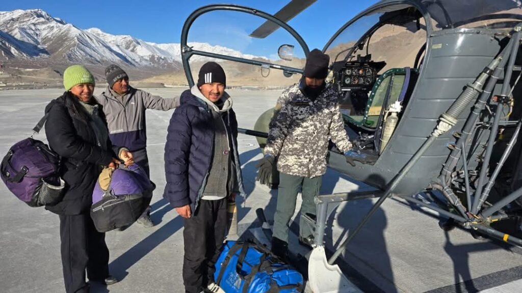 Leh, DD: In a significant step to ensure uninterrupted education, the Indian Air Force, at the request of LAHDC, has successfully initiated airlift operations to transport teachers to schools that remain inaccessible due to heavy snowfall. A flight from Leh to Lingshed carried fifteen passengers, including one infant, while the return flight from Lingshed to Leh transported three passengers, including a doctor and teachers. The move follows the official reopening of schools in the region after the winter break.