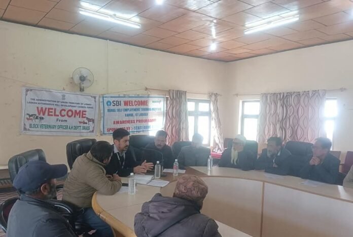 Diplomat Correspondent Kargil: DD, Animal Husbandry Department, Drass in collaboration with State Bank of India, Branch Drass organised an awareness program on financial assistant to farmers today at Drass Sub-Division. The program started with a speech by Zakir Hussain, Branch Manager, SBI Drass who gave a detailed presentation about the schemes of different types of … Continue reading Animal Husbandry Department, SBI Drass organise awareness on financial assistance schemes for farmers