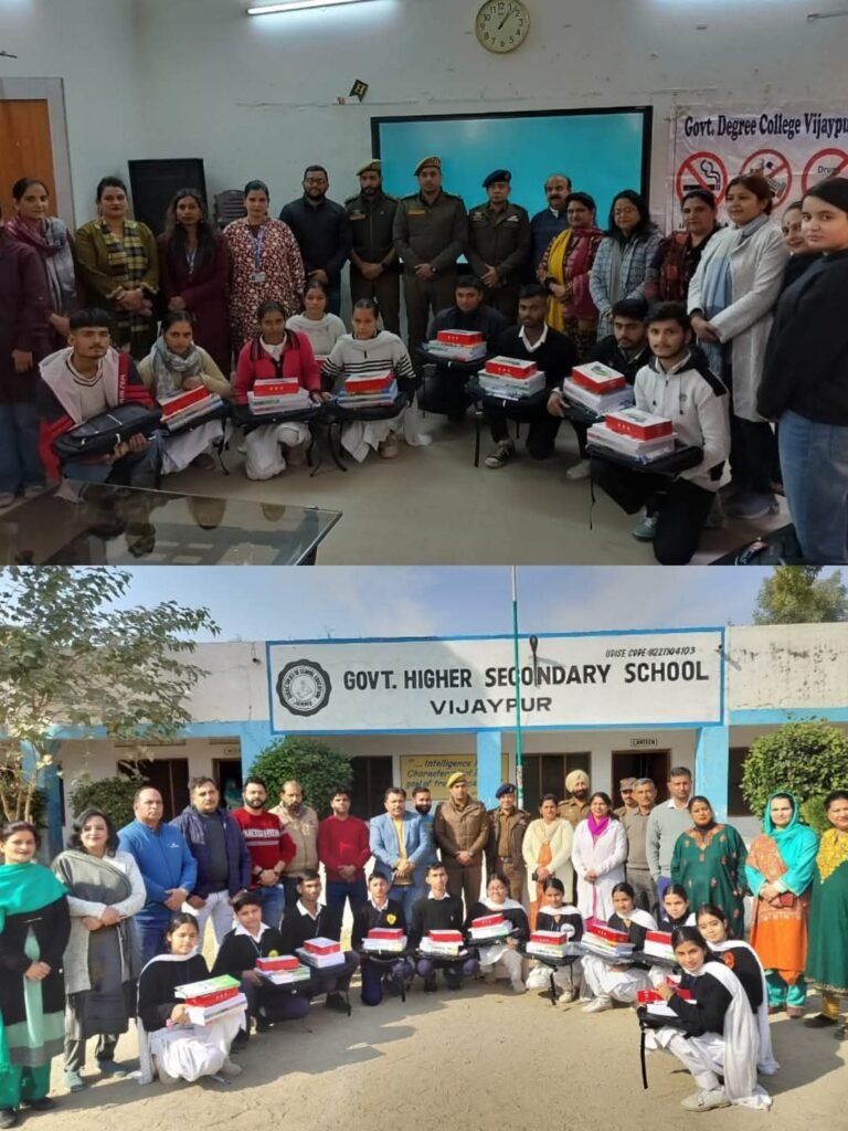 The programmes at Govt. Degree College Vijaypur and Govt. Higher Secondary School Vijaypur organized under Civic Action Programme (CAP) were presided over by SDPO Vijaypur accompanied by SHO Police Station Vijaypur in which a total of twenty one students had actively participated in the said drug awareness programmes. All the participating students of both the educational institutions were given school bags alongwith stationary items as a token of appreciation for their participation.
