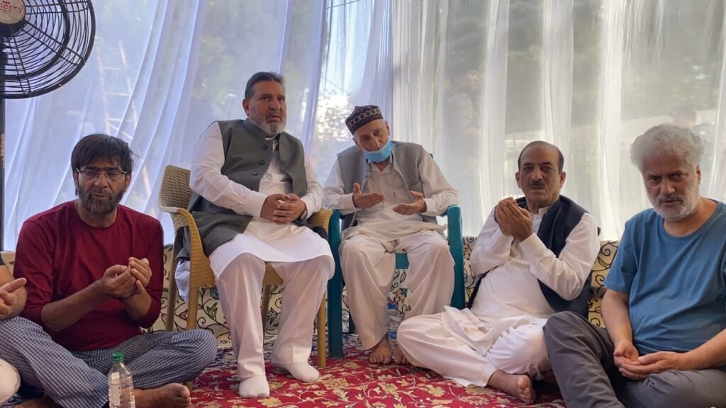 Srinagar: DD, Apni Party President Syed Mohammad Altaf Bukhari led a party delegation — which included the party’s veteran leader Mohammad Dilawar Mir — to pay a condolence visit to the bereaved family of Naseema Akhter, wife of Mir Ghulam Qadir, at Waaz Bagh, Hyderpora, in Srinagar.