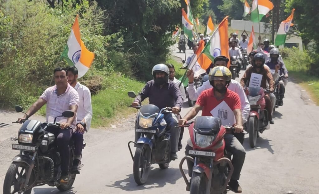 Rajouri:TDD, A grand car and bike rally was today organised here in the border areas of Doongi and Nowshera to raise voter awareness as part of the ongoing SVEEP (Systematic Voters’ Education and Electoral Participation) campaign ahead of the upcoming Jammu and Kashmir Assembly elections.