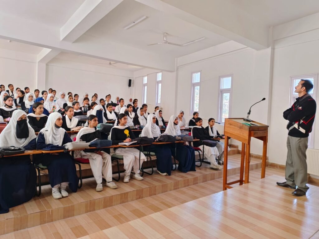 Bhaderwah,TDD, The School of Management Studies (SOMS), Bhaderwah Campus, University of Jammu, successfully conducted a comprehensive career counseling session for 11th and 12th-grade students of Government Girls Higher Secondary School, Bhaderwah. This initiative aimed to inform students about diverse career pathways available across various fields, including Medical, Non-Medical, Arts, Commerce, IT, and Tourism.