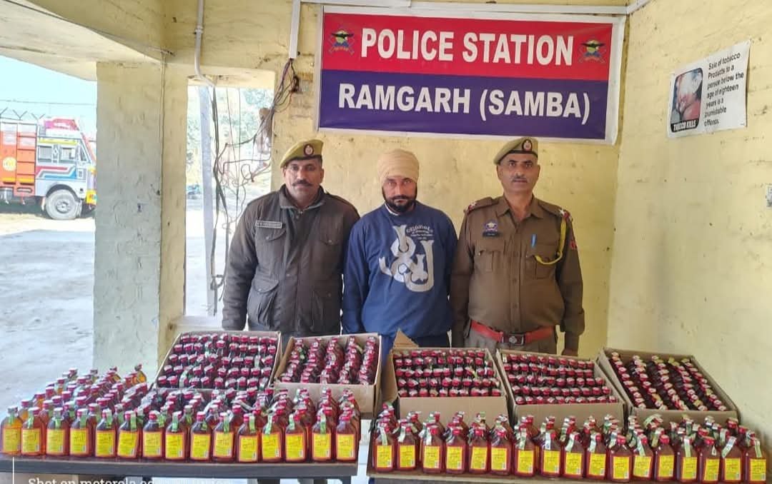 Samba ,TDD: Intensifying its drive against the sale of illicit liquor, J&K Police has arrested a bootlegger and recovered four hundred eighty bottles of illicit liquor of 180 ml each from his possession in the jurisdiction of Police Station Ramgarh.