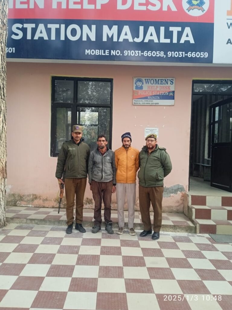 Udhampur :TDD,Police team of Police Station Majalta led by its SHO while performing patrolling/vehicle checking duty at Battal, Dhar road stopped one vehicle (load Carrier) bearing registration No. JK06B-3913 for checking purpose. During checking of said vehicle, 04 no. of bovines were found laden inside the vehicle which were tied in a cruel manner and were being transported illegally without any valid permission.