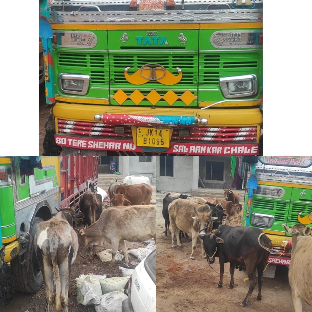 Udhampur :TDD,Team of Police Post Roundomail led by its Incharge have foiled one bovine smuggling bid in which 15 bovines were rescued from vehicle bearing regd. No. JK14B-1095 from Roundomail naka point.