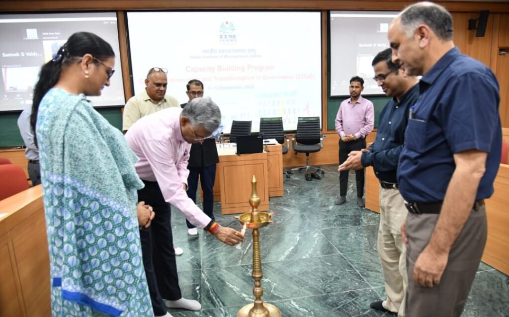 Jammu, September 11, 2024: The Indian Institute of Management (IIM) Jammu hosted the inaugural ceremony of the first Capacity Building Program for officials from the Finance and Planning & Monitoring Department of the Union Territory of Jammu and Kashmir at Vivekananda Classroom, Jagti on 11th Sept 2024. The program under the Centre for Innovation and Transformation in Governance (CITaG), is a visionary initiative of the Planning Development & Monitoring Department, Government of J&K. This center integrates the State Institute of Transformation, NITI Aayog, GoI, the PPP Cell funded by the Department of Economic Affairs, GoI, and the Future Ready Governance initiative of the J&K Government. IIM Jammu serves as the Nodal Knowledge Partner and implementing body for CITaG, guiding its mission to bring transformational change to the region.