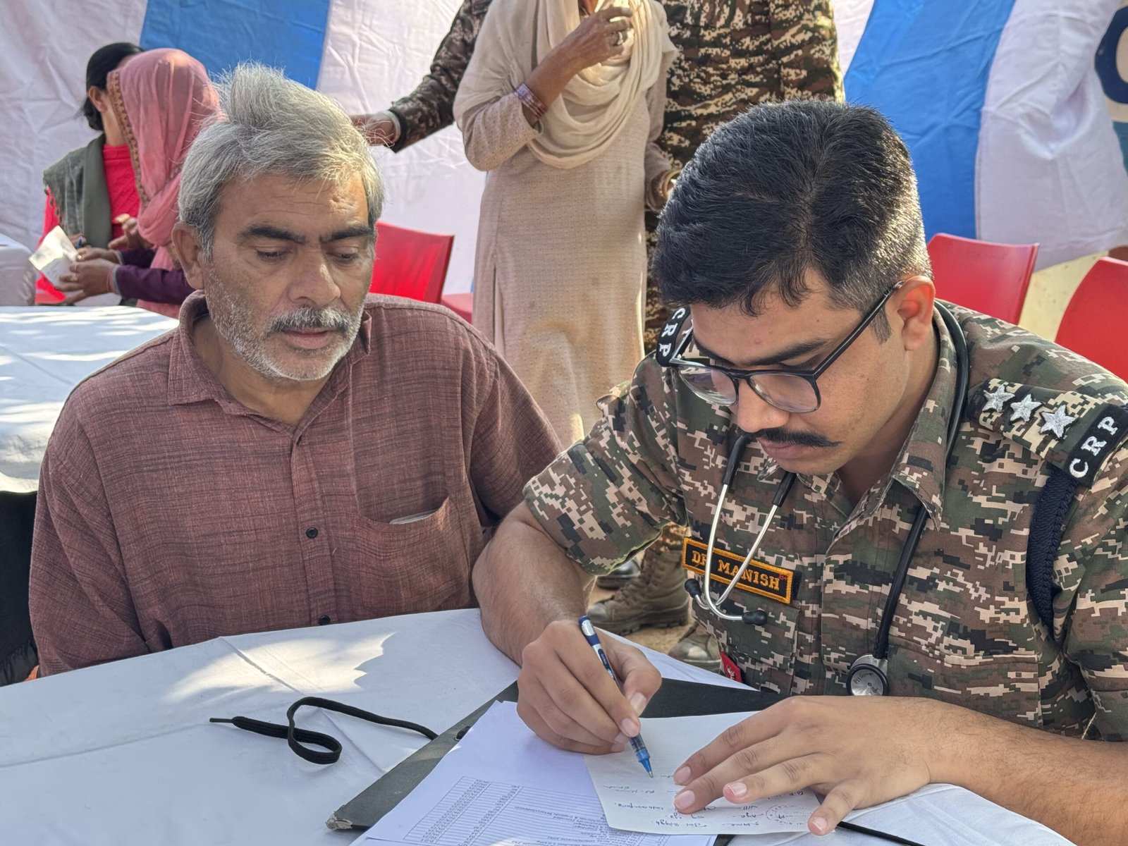 The medical camp was attended by a distinguished team of medical professionals and senior CRPF officers, including Kartar Singh (Second Commanding Officer), Shyam Lal (Second Financial Officer), Dr. Manish Rundla (Medical Officer), and other key personnel. Local dignitaries such as Shri Sheikh Tahir, Deputy Superintendent of Police, and former Sarpanch Mankhana Devi from Dharmatal Block-Narsu were also present.