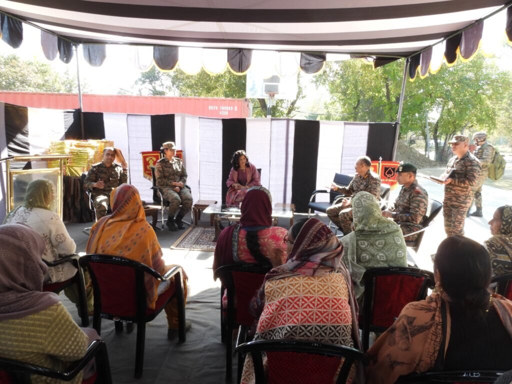 Naushera:DD, In a heartening display of support and solidarity, Praveena Mukherjee, the Chairperson of the Army Women Welfare Association (AWWA), Ace of Spades Division, engaged in an important interaction with the Veer Naris from various villages of Naushera block.