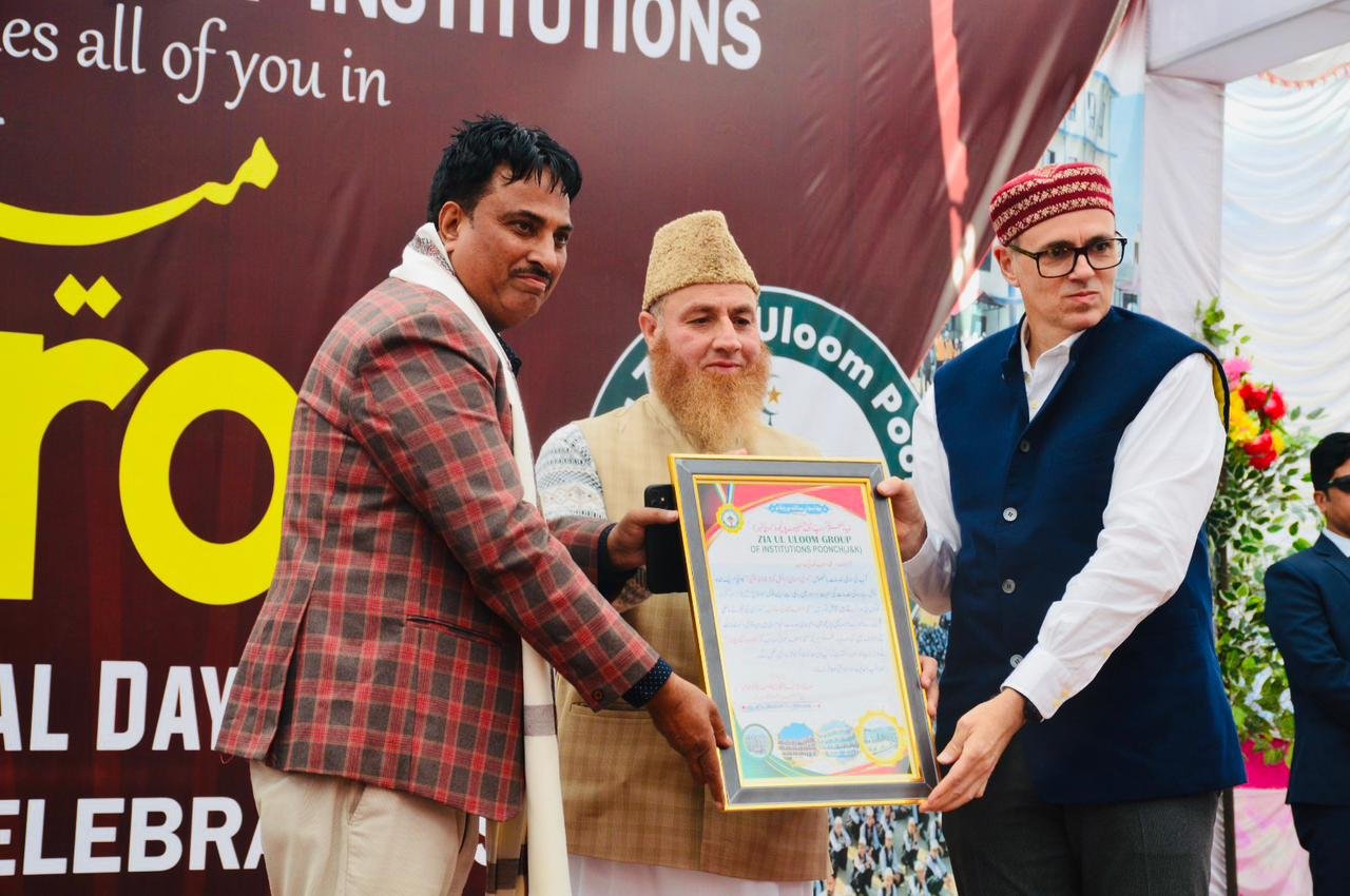 Poonch, DD, The Golden Jubilee Celebrations of Jamia Zia-ul-Uloom, Poonch, were held with great enthusiasm and reverence today, in a grand ceremony attended by Chief Minister Omar Abdullah, Tribal Affairs Minister Ch. Javed Ahmed Rana and senior Cabinet Minister including Sakeena Ittoo, Javed Ahmad Dar and Satish Sharma. Advisor to Chief Minister Nasir Aslam Wani Sogami was also present.