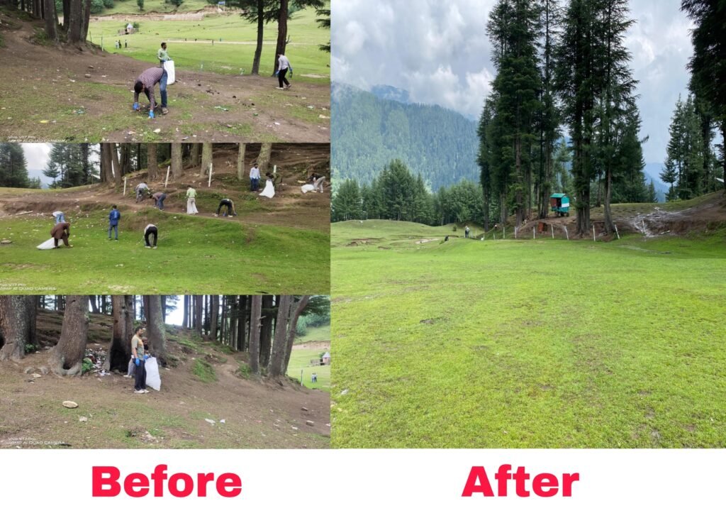 Kishtwar,DD, A cleanliness drive was organized at Devigol Tourist Spot in Block Bunjwah of District Kishtwar under the Swach Bharat Mission.