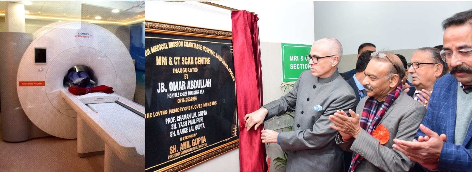 JAMMU,TDD,Chief Minister Omar Abdullah today inaugurated the MRI and CT Scan Center at Swami Vivekananda Medical Mission (SVMM) Charitable Hospital in Ambphalla, Jammu. Member of Legislative Assembly (Udhampur East) Pawan Gupta, President SVMM Charitable Hospital Anil Gupta, Patron Dr. Subash Gupta, President Jammu Chamber of Commerce & Industry Arun Gupta, along with members of the hospital’s managing committee, faculty, staff, and other dignitaries were present on the occasion.