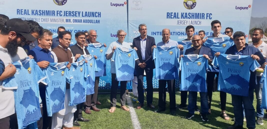 SRINAGAR, DD: Chief Minister Omar Abdullah today unveiled the special edition “Peace Jersey” of Real Kashmir FC, designed in collaboration with iconic Danish sportswear brand Hummel, at a ceremony held at TRC Ground Srinagar.
