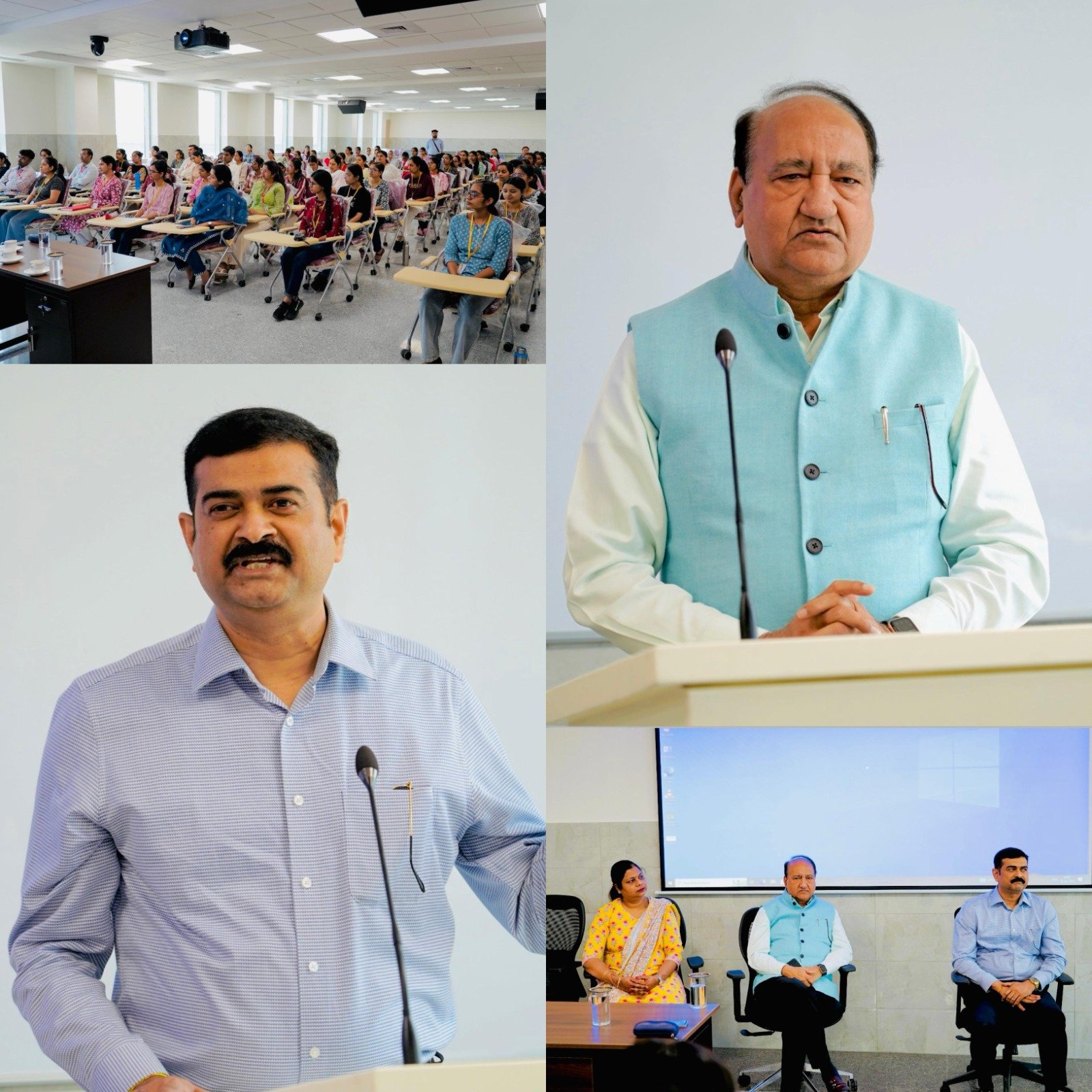 The event was graced by Prof (Dr) Shakti Kumar Gupta, Executive Director and CEO of AIIMS Jammu. In his inspiring address, Dr. Gupta emphasized the importance of thinking innovatively and pursuing research activities right from the undergraduate level. He encouraged students to actively participate in community outreach programmes, highlighting that true healthcare goes beyond hospital walls and into the heart of communities. Dr. Gupta also spoke about the need for balancing technical expertise with strong interpersonal and communication skills, stressing that qualities like empathy, leadership and emotional intelligence are as critical as medical knowledge for delivering holistic and compassionate patient care. He motivated the students to stay committed to continuous learning, innovation and service to society, shaping themselves into future leaders of healthcare.