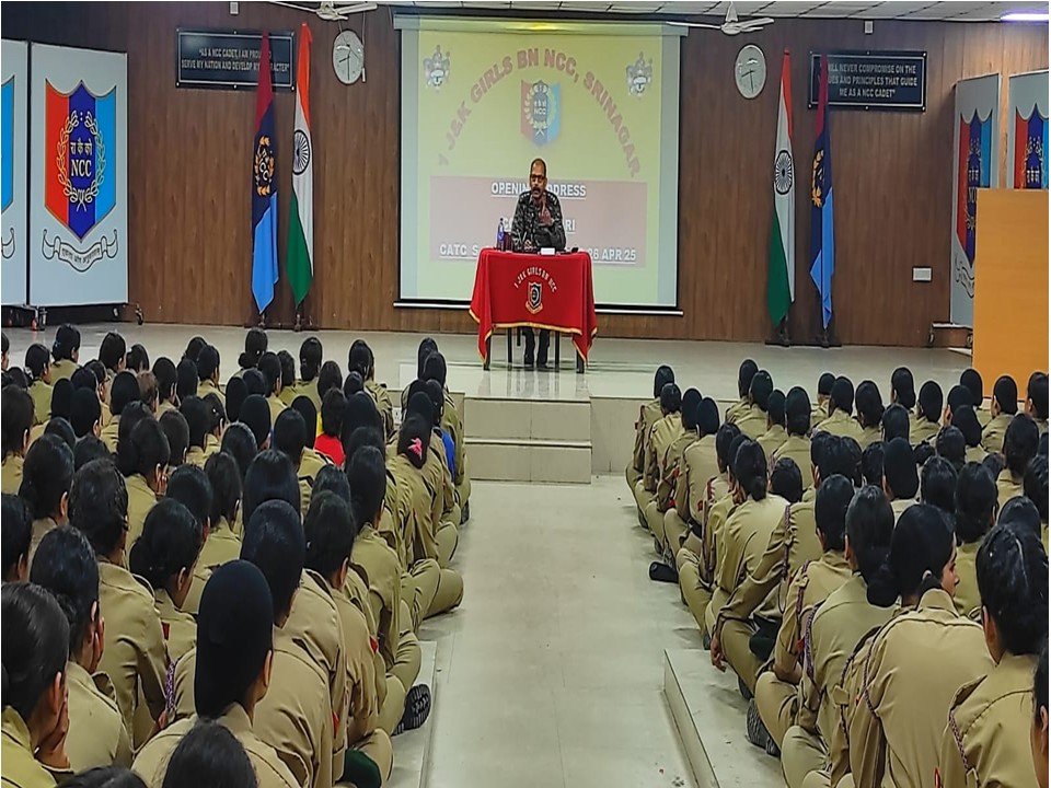 Nagrota: DD, The Annual Combined Annual Training Camp (CATC), organized by the 1 J&K Girls Battalion NCC Srinagar has commenced under the aegis of Col SP Tiwari, as the Camp Commandant from April 17 till April 26, 2025, at the NCC Training Academy (NTA), Nagrota. Approximately 450 girl cadets from various regions of Jammu & Kashmir are participating in this camp. The camp provides cadets with a valuable opportunity to train and live together, promoting the core NCC values of discipline, teamwork, camaraderie, and community service. The aim of this camp is to select Sringar group team for Thal Sainik competiton , shooting competition as well as selection of best cadet for Republic Day Camp (RDC) 2026 and cultural team for SNIC Srinagar 2025.