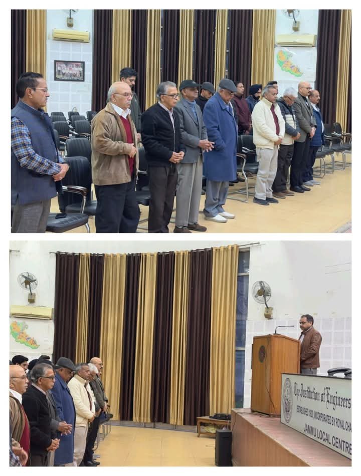 Jammu, DD, A solemn condolence meeting was held today at The Institution of Engineers (India), Jammu Centre, to mourn the passing of three distinguished engineers—Er Yudhvir Gupta, FIE; Er Padam Nabh Bali, MIE; and Er K K Verma (Pandoh), MIE.