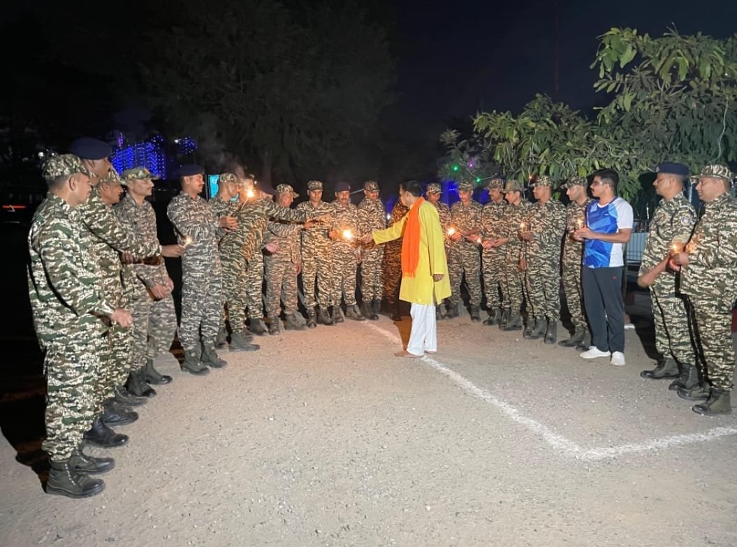 Amidst their crucial duties of safeguarding the nation, the CRPF jawans and officers took a break to participate in the festival of lights in a sustainable manner. A large number of personnel formed a semi-circle within the camp premises, holding eco-friendly candles and sparklers, and chanting patriotic slogans like “Bharat Mata Ki Jai.”