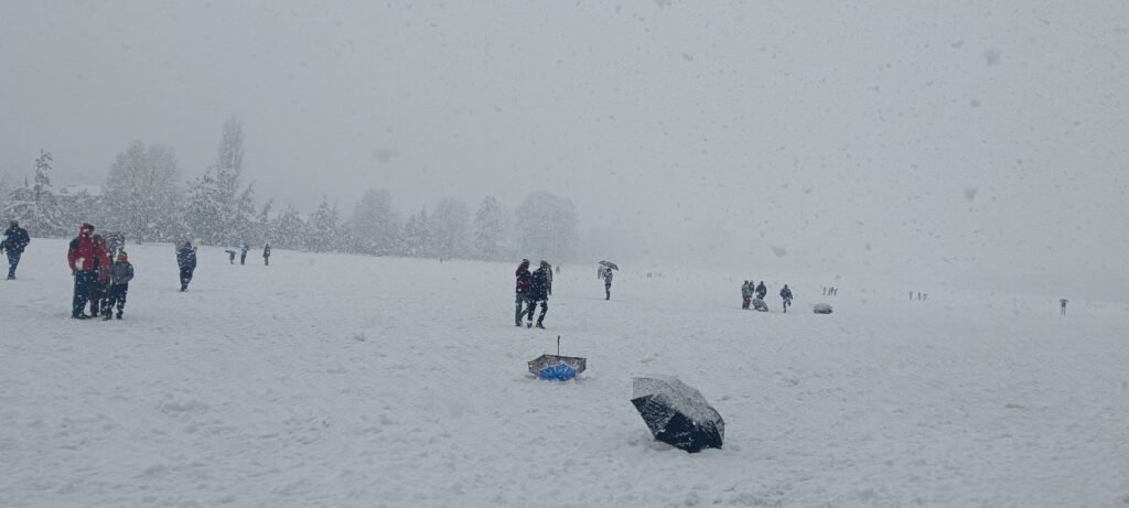 Kishtwar ,TDD,The iconic Chowgan Ground in Kishtwar has turned into a magical winter wonderland, drawing visitors from near and far. The pristine white blanket of snow has created a serene and picturesque landscape, offering moments of pure seasonal joy.