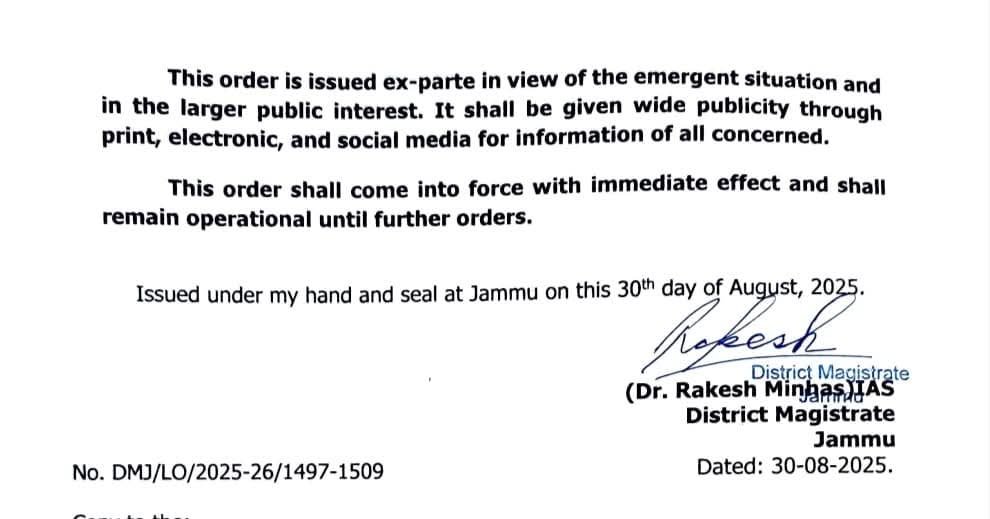 The District Magistrate warned that anyone violating this order will face penal action under BNSS, 2023, and other applicable laws. The order has been issued with immediate effect and will remain operational until further instructions.