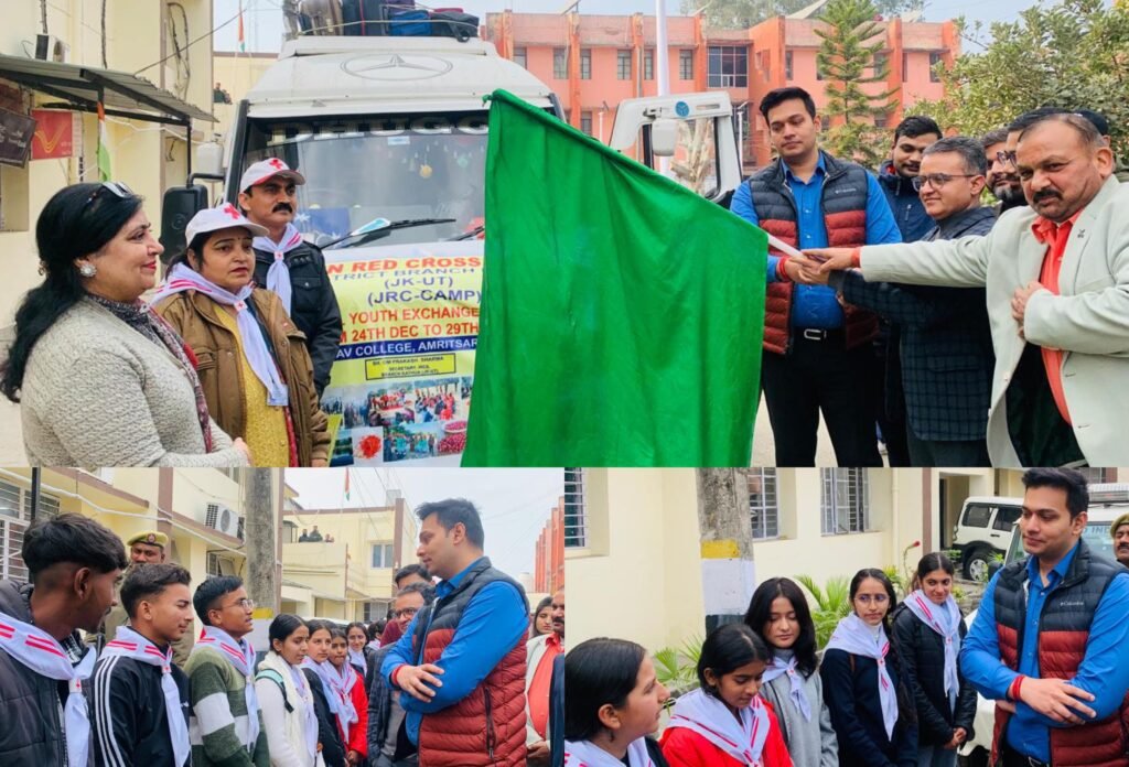 Kathua : TDD ,The Indian Red Cross Society, Kathua, organized a flag-off ceremony today at DC Complex, Kathua, to send off its contingent of volunteers for the National Youth Exchange Programme being held in Amritsar, Punjab.