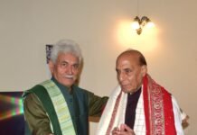 Meets cloudburst survivors in GMC Jammu, holds virtual interaction with victim families in Chishoti from Raj Bhawan Diplomat CorrespondentJAMMU:DD, Union Defence Minister, Rajnath Singh has returned back to New Delhi after his short visit to Jammu where he met the cloudburst survivors at Government Medical College, Jammu, and also interacted virtually with the victim families … Continue reading Defence Minister, Rajnath Singh returns to New Delhi