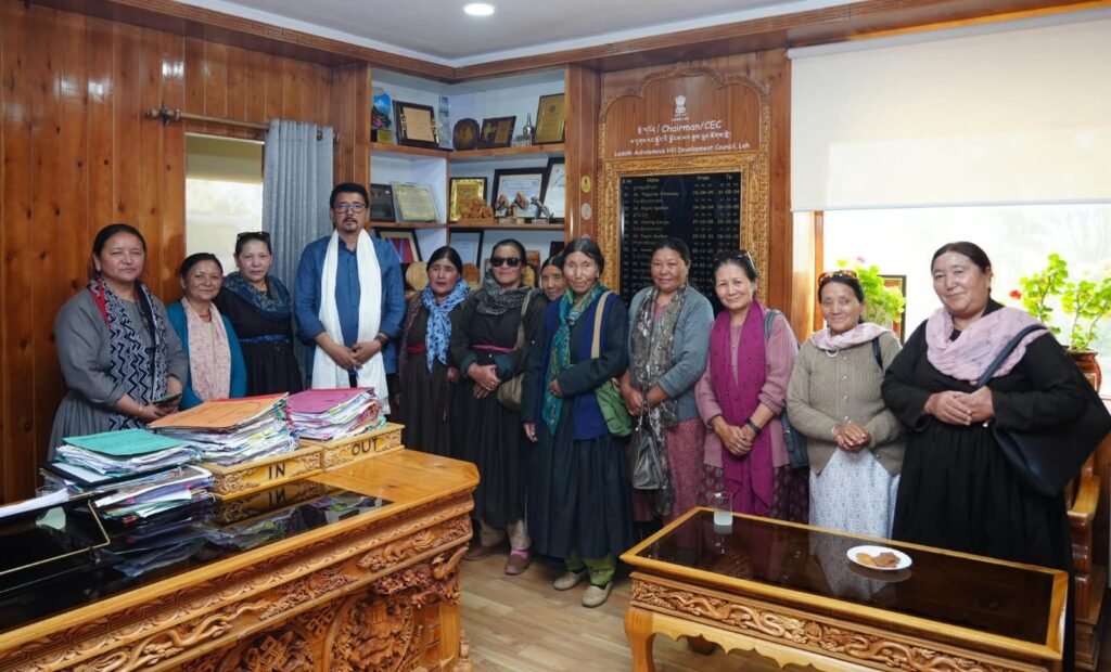 Leh, DD, A delegation led by Rinchen Dolkar, State President, BJP Mahila Morcha, and Phuntsog Angmo, Vice President, BJP Mahila Morcha, along with Phunchok Dolma, representative of Tsejol Ama Tsogspa Chubi Katpa, Leh, called on Chairman/CEC, LAHDC Leh, Adv. Tashi Gyalson, to submit a formal request for financial assistance towards the completion of the Tsogspa’s office building in Katpa, Leh.