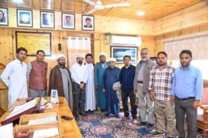 Diplomat Correspondent Kargil: DD, A delegation of Kargili residents at Khomeini Chowk Srinagar led by Sheikh Issa Waizi met with the Chairman and Chief Executive Councilor (CEC) of LAHDC Kargil, Dr. Mohd Jaffer Akhoon, at his office chamber. During the meeting, the delegation apprised the CEC of various issues and challenges being faced by the … Continue reading Delegation of Kargili Residents residing at Khomeini Chowk Srinagar Meets CEC Dr. Mohd Jaffer Akhoon