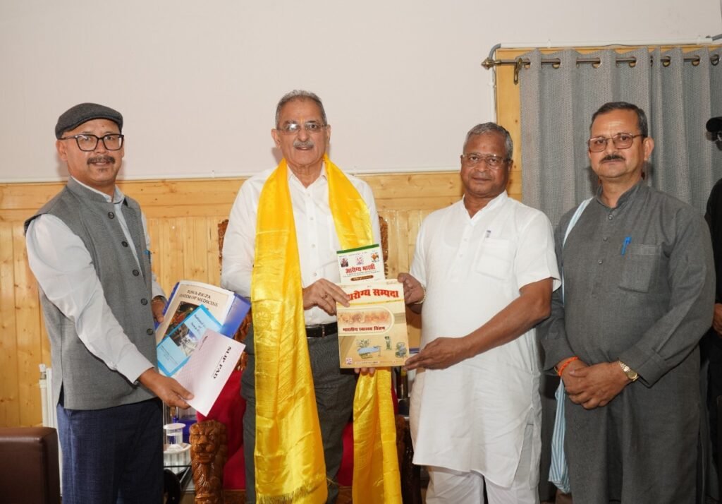 Leh: DD, In a significant step towards preserving and promoting Ladakh’s traditional medical heritage, Dr. Padma Gurmet, Director, National Institute of Sowa Rigpa (NISR), Leh, along with Dr. Ashok Kumar, National Organizing Secretary of Arogya Bharti, and Sanjeevan Kumar, Northern Zone Coordinator, Arogya Bharti called on Lieutenant Governor of Ladakh, Kavinder Gupta.