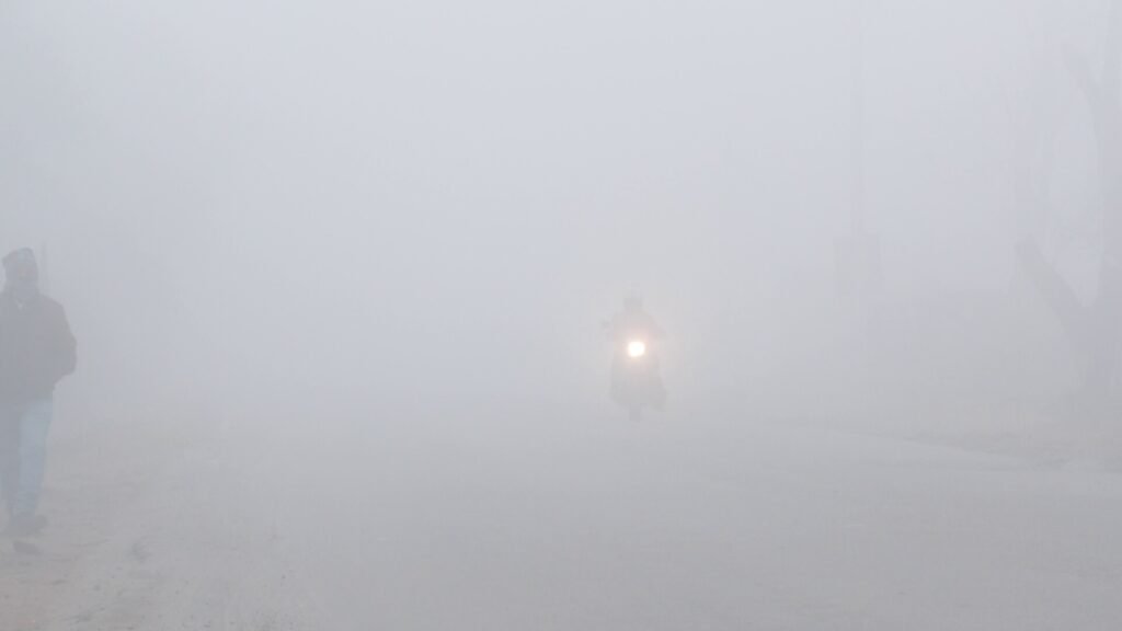 Udhampur :TDD,Dense fog has coupled with a severe cold wave, completely disabling normal lives in Jammu and Kashmir’s Udhampur district. Residents have had to reorder their daily lives because the visibility in the region has been dramatically reduced due to the extreme weather conditions.
