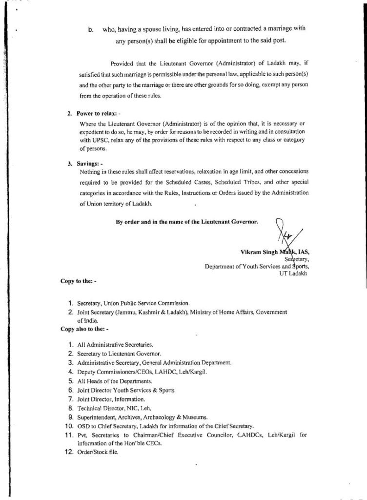 LATEST NEWS Code of living: Science, sport and the pursuit of resilience DRDO Conducts Successful Qualification Test for Gaganyaan Drogue Parachute Suspected Infiltration Bid Foiled on LoC in J&K’s Sunderbani; Man Arrested in Nowshera with Turkish Zigana Pistol, Says Indian Army Roads of Death and the Urgent Need to Awaken Our Youth Research on the Bakarwal Tribe: A Historic Step Toward Inclusive Policy-Making Ladakh Less than 1 min.Read Department of Youth Services and Sports UT Ladakh has issued the rules regulating the method or recruitment to the post of Zonal Physical Education Officer in the Ladakh Youth Services and Sports Department. By Diplomat Digital March 6, 2025 FacebookTwitterPinterestWhatsAppEmailPrintTelegram Hot this week Features Code of living: Science, sport and the pursuit of resilience February 20, 2026 0 New Delhi, Many books promise longevity through miracle diets,... India DRDO Conducts Successful Qualification Test for Gaganyaan Drogue Parachute February 19, 2026 0 New Delhi: India’s human spaceflight programme has achieved a... Jammu Suspected Infiltration Bid Foiled on LoC in J&K’s Sunderbani; Man Arrested in Nowshera with Turkish Zigana Pistol, Says Indian Army February 19, 2026 0 Rajouri, Jammu (India): The Indian Army on Thursday thwarted... Edit/Opinion Roads of Death and the Urgent Need to Awaken Our Youth February 19, 2026 0 The grim reality of road accidents in Jammu &... Edit/Opinion Research on the Bakarwal Tribe: A Historic Step Toward Inclusive Policy-Making February 18, 2026 0 The initiation of a longitudinal research project on the... Topics Features Code of living: Science, sport and the pursuit of resilience 0 New Delhi, Many books promise longevity through miracle diets,... India DRDO Conducts Successful Qualification Test for Gaganyaan Drogue Parachute 0 New Delhi: India’s human spaceflight programme has achieved a... Jammu Suspected Infiltration Bid Foiled on LoC in J&K’s Sunderbani; Man Arrested in Nowshera with Turkish Zigana Pistol, Says Indian Army 0 Rajouri, Jammu (India): The Indian Army on Thursday thwarted... Edit/Opinion Roads of Death and the Urgent Need to Awaken Our Youth 0 The grim reality of road accidents in Jammu &... Edit/Opinion Research on the Bakarwal Tribe: A Historic Step Toward Inclusive Policy-Making 0 The initiation of a longitudinal research project on the... Jammu Altaf Bukhari Advocates United J&K, Slams Demand for Separate Jammu State 0 Jammu: Apni Party President Syed Mohammad Altaf Bukhari today... Article India’s AI Pathway: Reimagining Global Leadership from the Global South 0 Nitin Upadhyay We are framing the India AI story within... India Grand Mufti of India Sheikh Abubakr Ahmad meets Prime Minister Narendra Modi 0 New Delhi: Grand Mufti of India Sheikh Abubakr Ahmad... Related Articles Winter Training Programme: 60 teachers from six educational zones participate in DIET Leh Ladakh January 30, 2026 KIWG 2026: Chandigarh Shock Ladakh to Set Up Men’s Ice Hockey Final Clash with Army; Ladakh Women Win First Gold Ladakh January 25, 2026 Administrative Secretaries Visit Phanday Milk and Dairy Cooperative Society in Matho Ladakh January 24, 2026 Traffic management reviewed in urban areas of Leh Ladakh January 18, 2026 Khelo India Winter Games 2026: Teams and Players Reach Leh, Receive Warm Welcome Ladakh January 18, 2026 Previous articleADDC Leh Sonam Nurboo convened a meeting on waste management system in urban and rural areas of Leh districtNext articleJuly 13 Martyrs Row: PDP Protests Against BJP in Srinagar, BJP Holds Counter-Protest in Jammu
