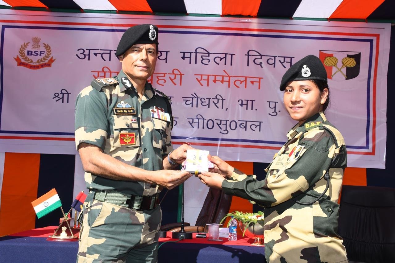DG facilitated BSF Mahila achiever’s in the field of operations, sports & training on International Women’s Day.DD