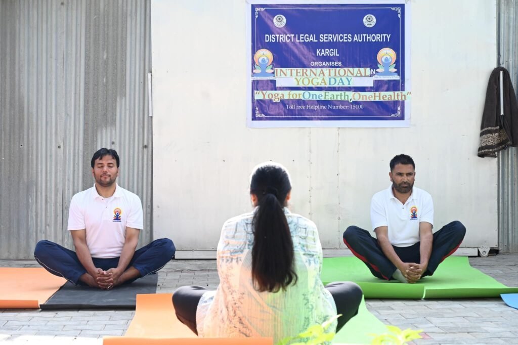 Kargil, DD, As per the direction of the Hon’ble High Court of J&K and Ladakh and as per the action plan provided by the Ladakh Legal Services Authority, the District Legal Services Authority Kargil celebrated International Yoga Day on 21st June 2025 in the premises of District Court Complex Kargil.