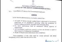 DM Kathua Orders Cancellation of Leaves of all Govt Employees.