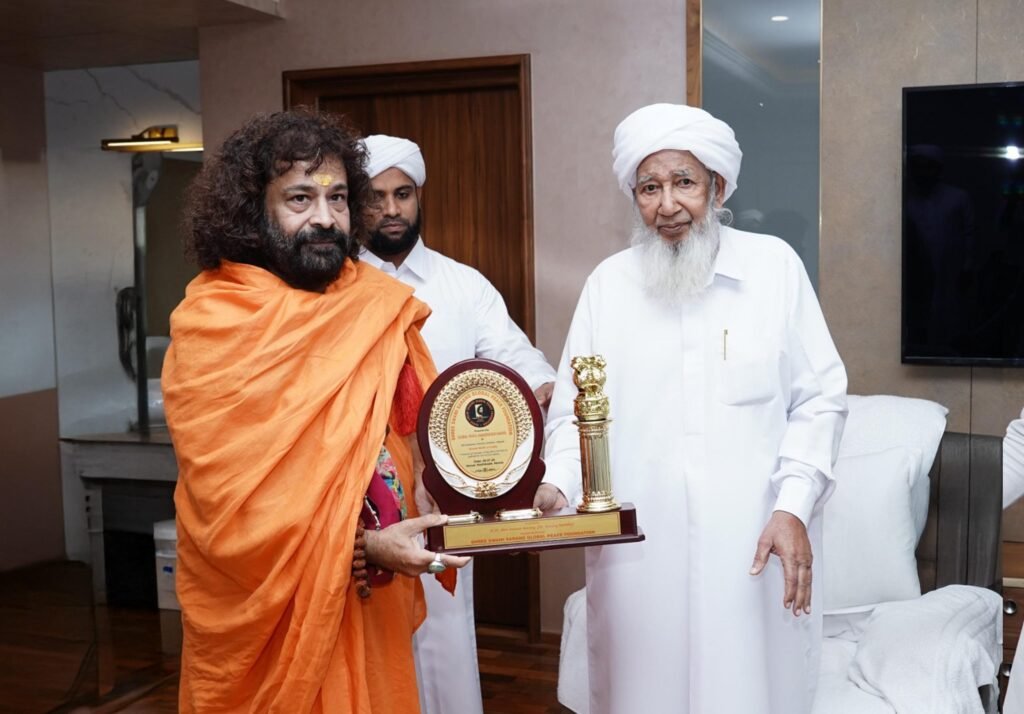 Calicut,DD : Dr. Sarang Mohiley (Shree Swami Sarang), spiritual leader and Founder & Director of Shree Swami Sarang Global Peace Foundation based in Lucknow, paid a courtesy visit to the Grand Mufti of India, Sheikh Abubakr Ahmad, at the Headquarters of Markazu Saquafathi Sunniyya, Calicut, Kerala.