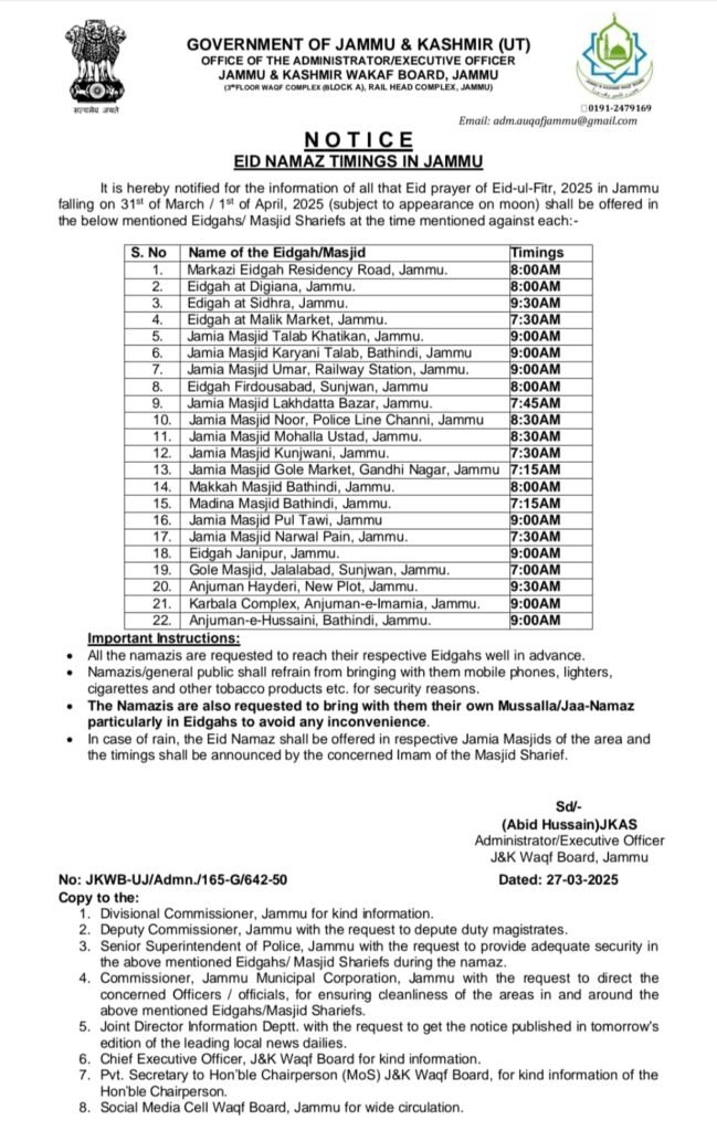 EID Namaz Timing In Jammu