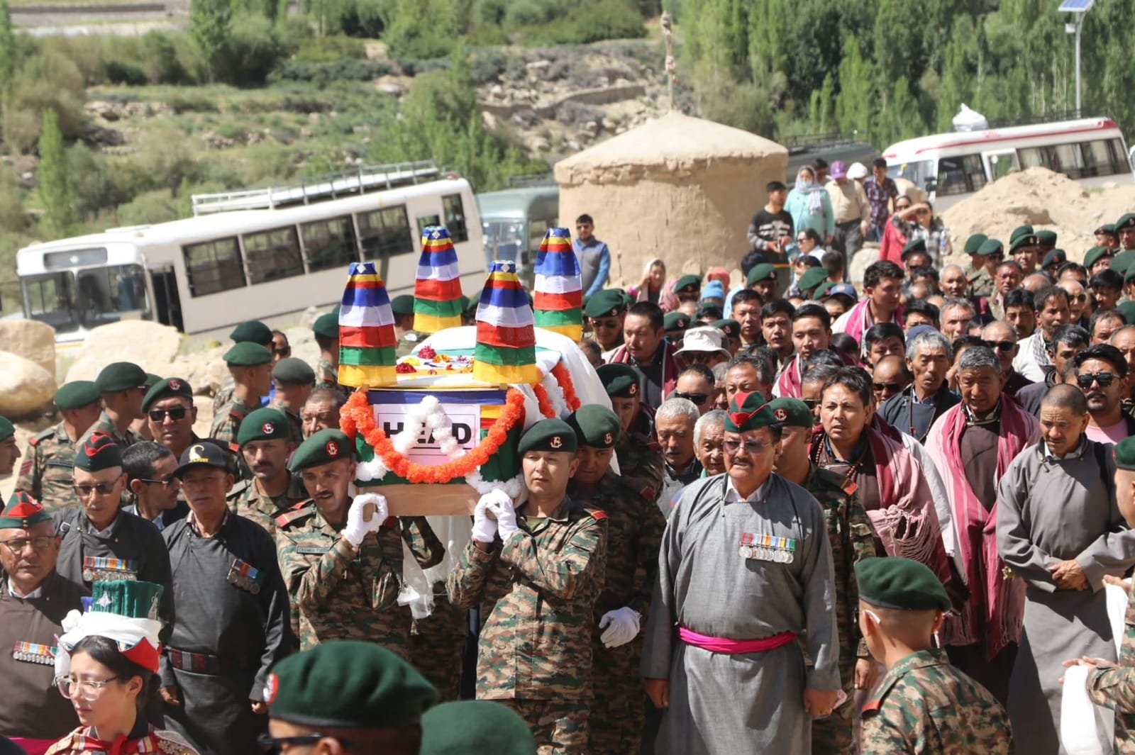 Senior army officials including Lieutenant General Hitesh Bhalla, UYSM, SC, SM, VSM, General Officer Commanding, 14 Corps, Brigadier Rinchen Dorje, Commandent officer LSRC Col. Kamal Pandey, Subedar Major Tashi Zangpo LSRC along with commanding officers from other battalions, all stood in solidarity with the bereaved family, honouring the soldier who had once stood among them.