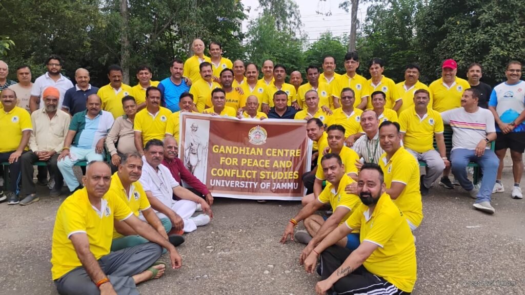 Jammu, DD,Under the patronage of Prof. Umesh Rai, Vice Chancellor, University of Jammu, the Gandhian Centre for Peace and Conflict Studies, University of Jammu, in collaboration with the SKUAST Jammu Morning Walkers Association, celebrated Mahatma Gandhi’s birthday (Gandhi Jayanti) with great enthusiasm and fervor. The program was attended by around 100 prominent members of Civil Society from R.S. Pura, who gathered to pay tribute to the Father of the Nation.