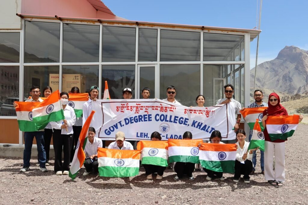 Khaltse, DD: Government Degree College Khaltse celebrated the “Har Ghar Tiranga” campaign on its campus today with great patriotic zeal. The event began with Dr. Sameena Iqbal, Principal of the college, hoisting the national flag.