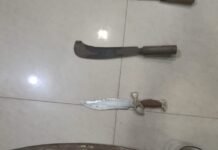 Diplomat CorrespondentJammu:DD, Police today claimed to have arrested goons with sharp edged weapons here at Bakshi Nagar in Jammu.A team from Police Post Sarwal, led by IC PP Sarwal SI Sunil Singh, has successfully arrested four accused persons, including Rajeev Tikoo, who were found roaming in the locality with sharp edged weapons. Acting on specific … Continue reading GOONS ARRESTED WITH SHARP EDGED WEAPONS IN BAKSHI NAGAR