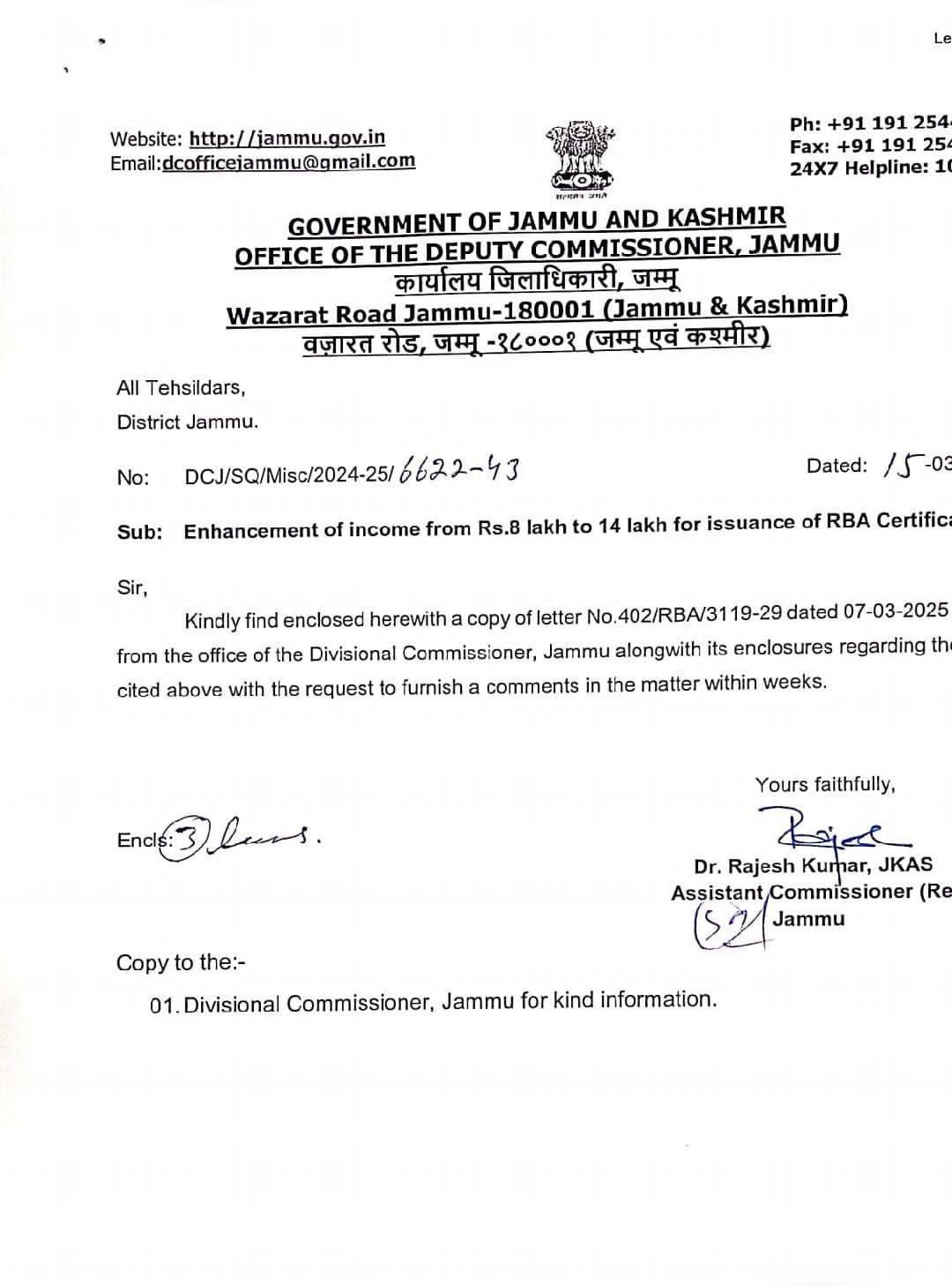 Government of Jammu and Kashmir office of the Deputy Commissioner Jammu